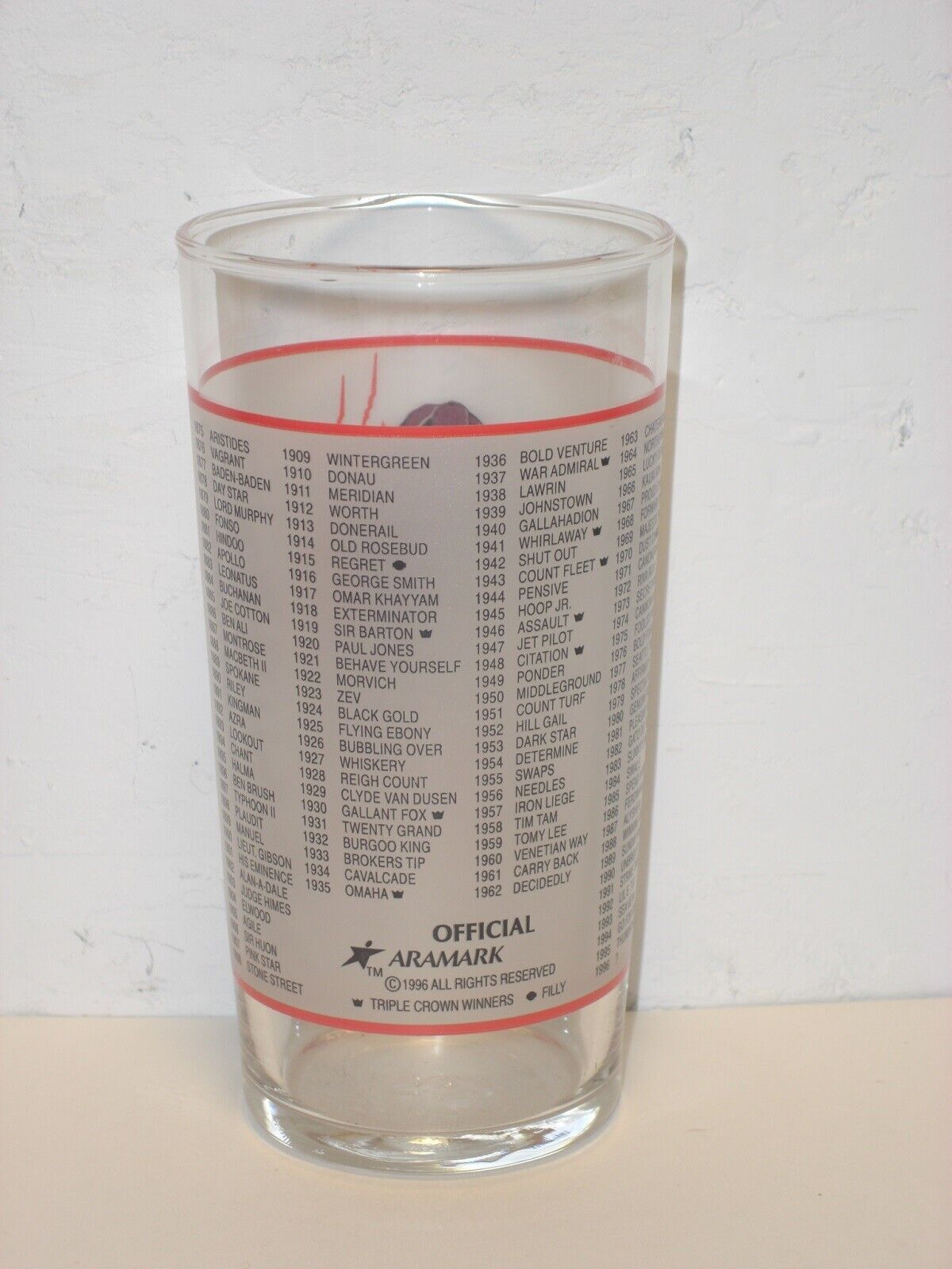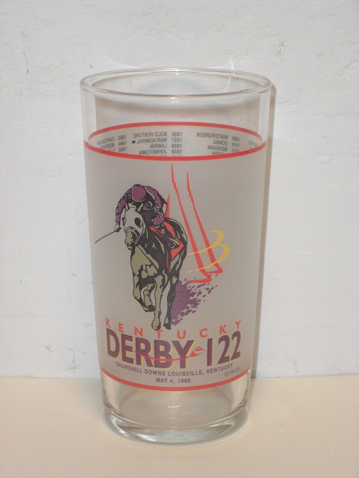 This is the Official 1996 - 122nd Kentucky Derby glass in NEW, UNUSED, MINT Condition. Domestic postage cost will be determined by the Zip Code of the Buyer in the U.S.A. International postage cost will be determined by the Country of the Buyer.