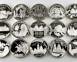 Gorgeous lot of 15 Sterling Silver Rounds (5 oz. Each) Each minted in Russia, 25 Rubles each, Proof Strikes Years Include 1996 Wildlife - Amur Tiger Proof 25 Rubles 2001 Bolshi Theater Ballet Romeo Juliet 25 Rubles 2004 The 2nd Kamchatka Expedition 1733 - 1743 2004 Holy Trinity St. Sergius Lavra 25 Rubles 2007 F.A. Golovin 25 Rubles 2008 Wildlife - European Beaver 25 Rubles 2008 Astrakhan Kremlin 25 Rubles 2009 The Saint Trinity Skanov Monastery Pensa Region 25 Rubles 2010 Alexandro-Svirsky Monastery Sloboda 25 Rubles Coins are all in Proof Uncirculated condition Great Silver Set! California Buyers: 9% sales tax will be added. Returns Policy: About Us: Continental Coin and Jewelry Company Web Department: Monday - Friday, from 10:30am - 6pm PST Reference Item #FCC-3241 JP 6/2/