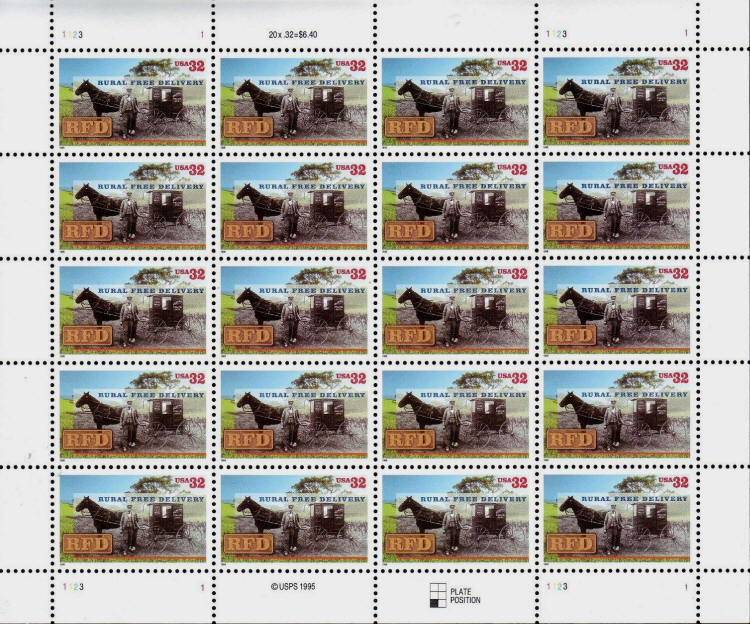 - 1996 32c Rural Free Delivery Vehicle, Sheet of 20 Scott 3090 Mint F/VF NH