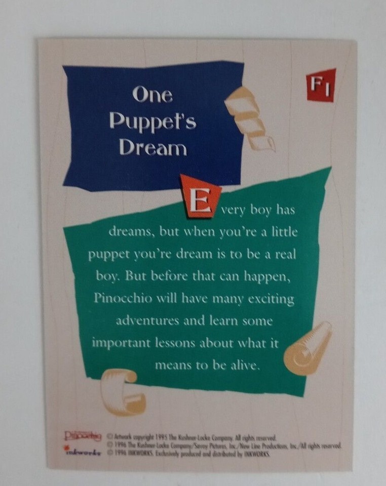 This is for a 1996 Inkworks Adventures of PINOCCHIO Foil Card #F1 Chase Insert.