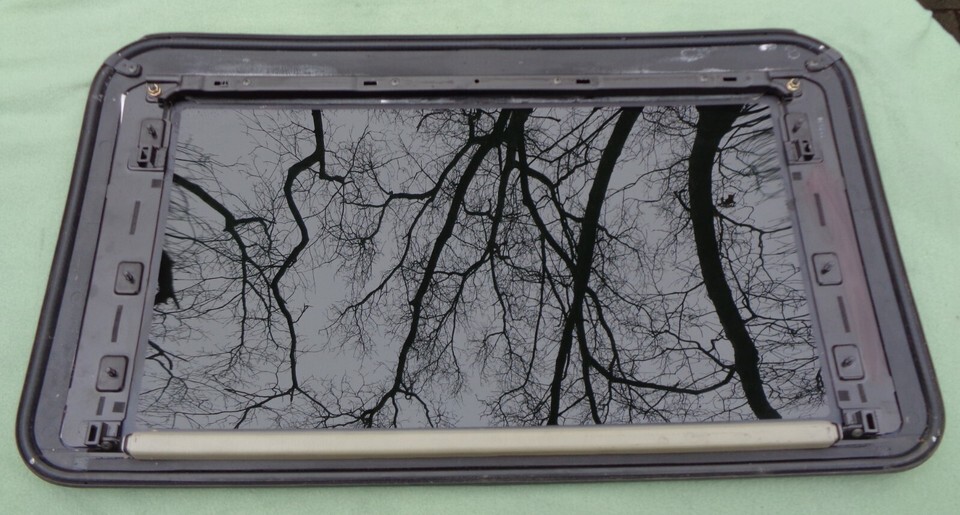 1997 - 2000 Toyota RAV4 OEM Factory Sunroof Glass Panel. The sunroof is in good used condition. Measurements are 33 1/4" long by 19 1/2" wide. **This sunroof came standard on Toyota Rav4 model years 1997 thru 2000 but double check your measurements and compare to ours to ensure a perfect fit. Aftermarket sunroofs have become very popular over the last 10 years, if your sunroof switch looks like any in our last picture, you have an aftermarket. This is why it is important to double check your measurements. This glass panel was removed from a vehicle that had a blown engine so there is no unseen damage on this panel as is found with a majority of sunroof glass panels that are removed from wrecked vehicles. Often times on a wrecked vehicle, the metal trim around the glass, under the seal, will incur slight bends which will make the panel leak soon after. We have been dealing in sunroof glass panels for 25 years now and only sell the panels that come through our shop that are off of vehicles that have not been in major accidents. We also 100% inspect and clean the panels, especially the seals, in an effort to identify any imperfections that may cause issues down the road. The sunroof comes read to bolt in. Please contact us with any questions that you may have.
