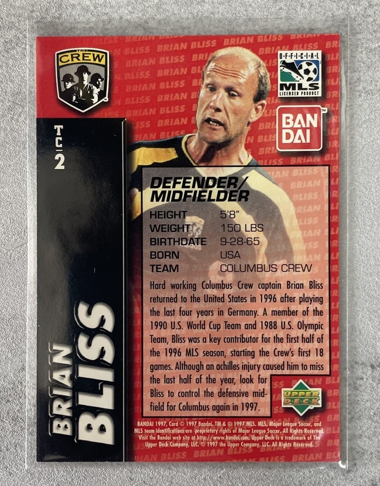 - 1997 Upper Deck MLS Team Captain TC2 Brian Bliss Columbus Crew Soccer Card