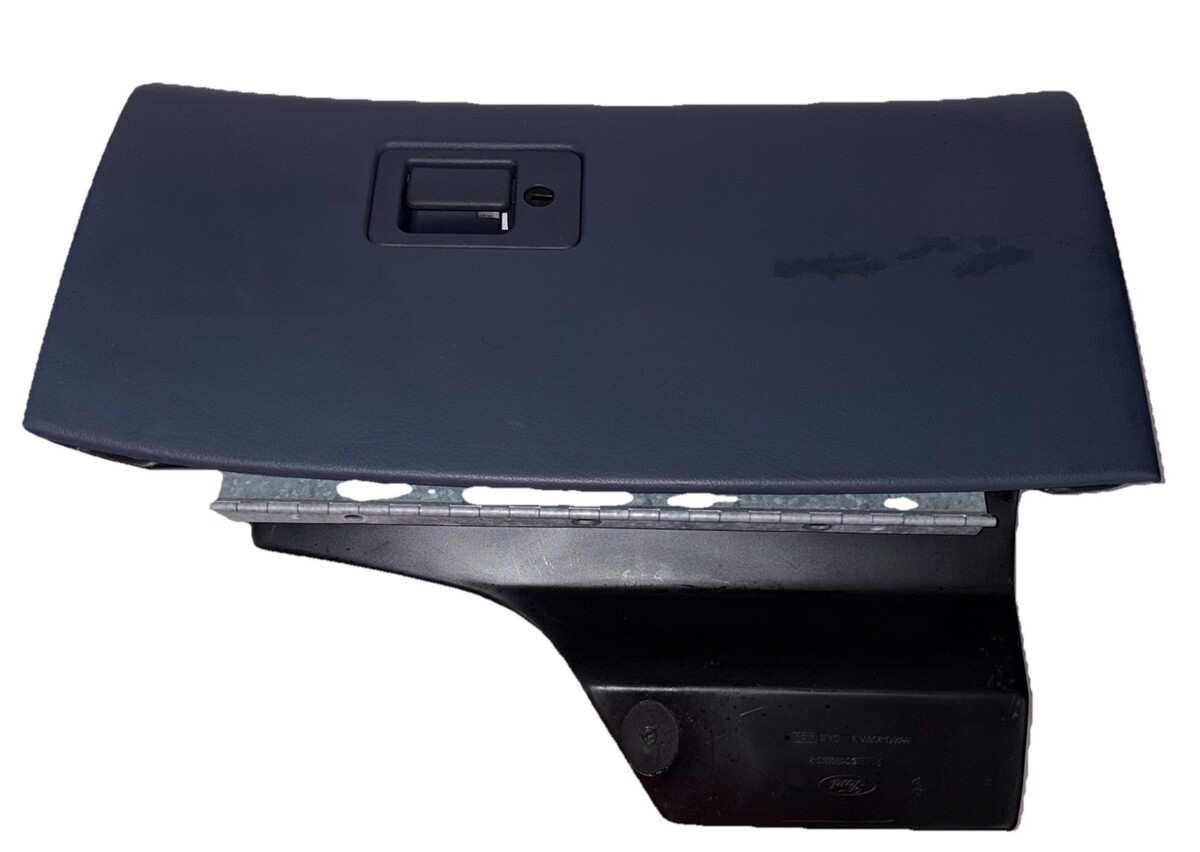 Pre-owned. Fully functional OEM Ford glove box door with integrated lower HVAC duct assembly. Hinge operates smoothly, latch works properly, and mounting points are intact.