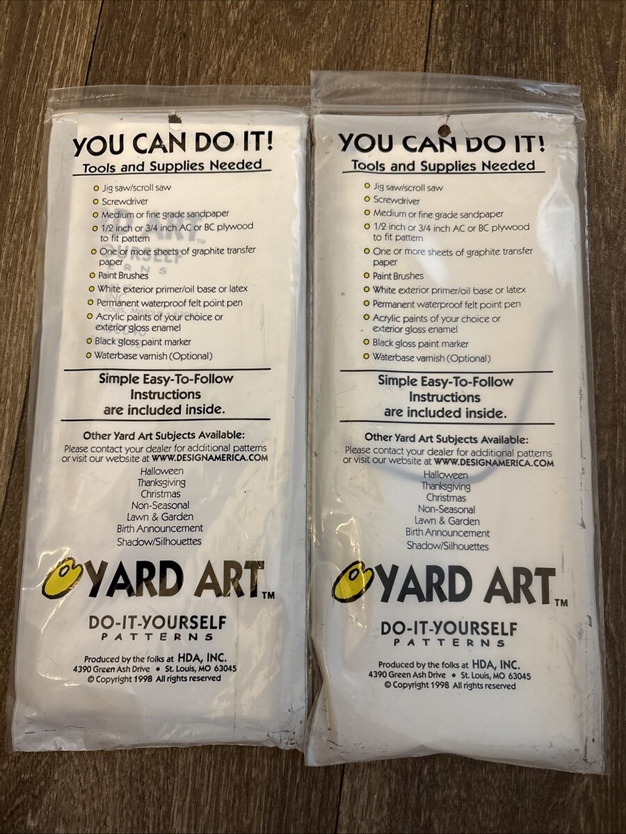 The 1998 DIY Yard Art Pattern for Christmas Holiday Santa and Mrs Claus is a festive and nostalgic addition to your holiday decor. Made of paper and measuring 28"x47", this pattern from HDA allows you to create your own Santa and Mrs Claus figures for your yard during the Christmas season. Made in the United States, this pattern is perfect for those looking to add a personal touch to their outdoor decorations.