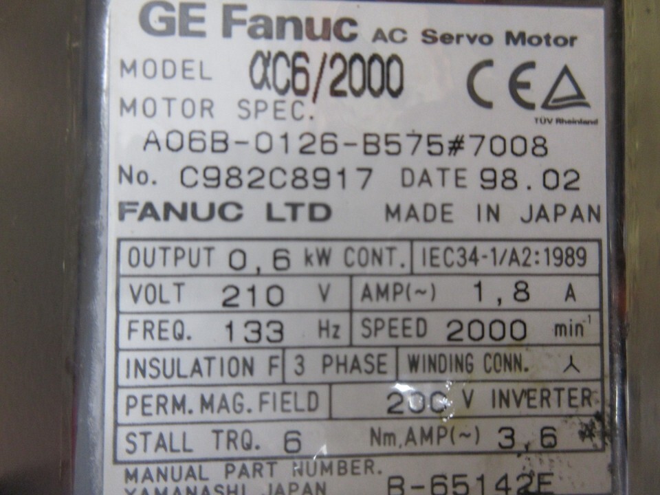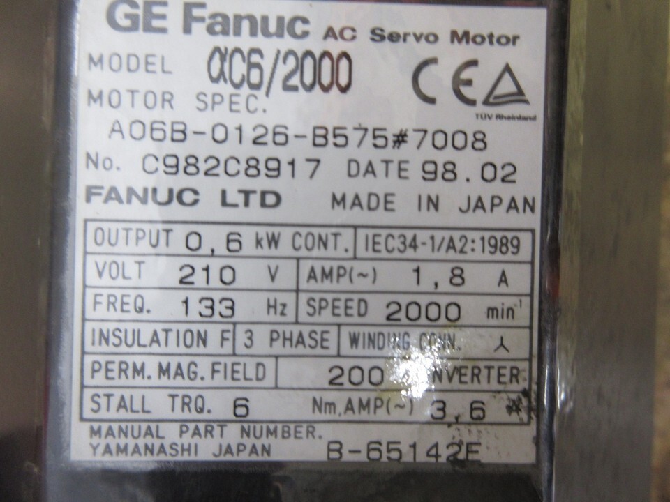 - 1998 HARDINGE COBRA LC-65 GE FANUC AC SERVO MOTOR A06B-0126-B575 #7008 EACH 1