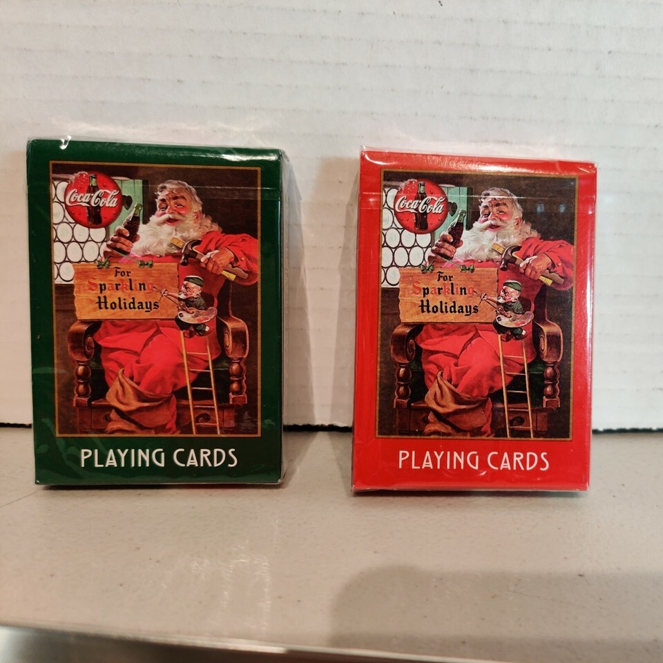 - 1998 Limited Edt Coca Cola Holidays Santa Nostalgia Playing Cards Two Decks Tin