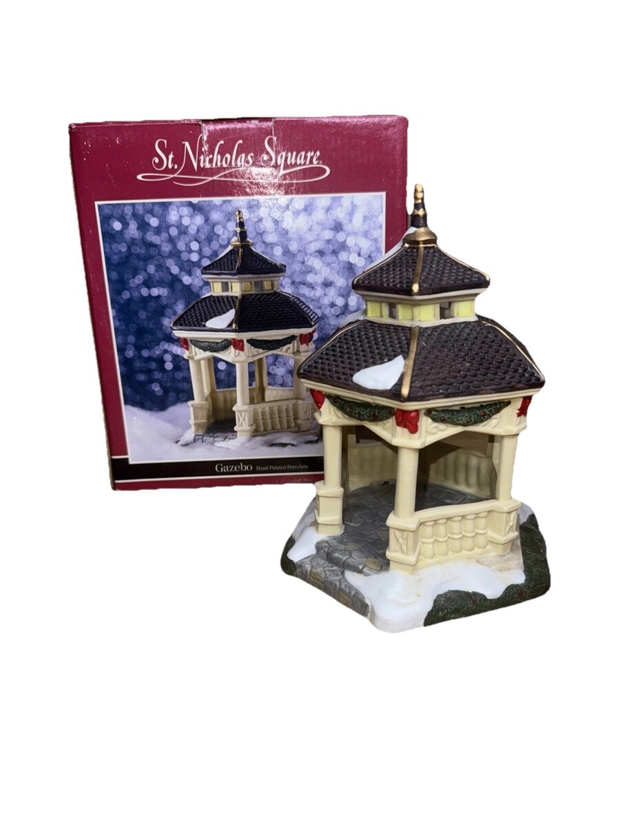 - 1998 St. Nicholas Square Gazebo Handpainted Porcelain Vintage Christmas Holiday