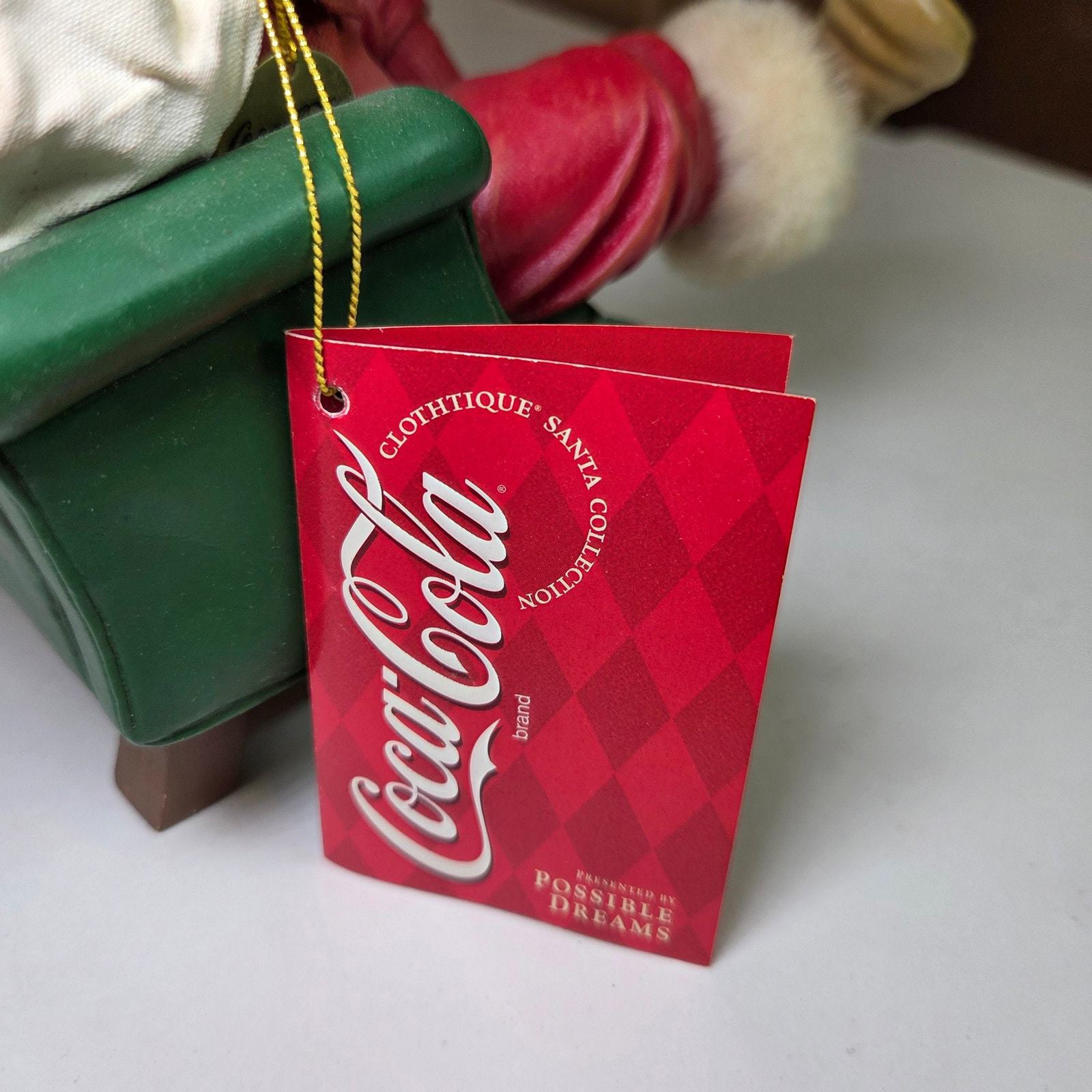 This figure retains its original Coca-Cola / Clothtique hang-tag and is a delightful piece for collectors of Coke memorabilia, Sundblom Santa art, or vintage holiday decor. Displays beautifully and remains one of the more charming Clothtique designs from the late 1990s.