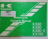1999 Kawasaki KX60 KX80 KX80-II KX100 MOTORCYCLE Owner's Manual If you have further questions feel free to message us or call us at We will leave POSITIVE Feedback after we receive your payment. Please do not forget to give us POSITIVE Feedback and FIVE Stars on all of the Detailed Seller Ratings! If you are not satisfied with your shopping Experience, please contact us to get a solution before you decide to leave a NEUTRAL or a NEGATIVE Feedback, We will do our best to solve any problems for you as soon as possible. We will provide you with the BEST POSSIBLE service because the POSITIVE Feedback and FIVE Stars are what we are striving for. Please email me through "My Messages" or "Ask Seller Questions" if you have any question about our listings or your purchase. Please give us a Five