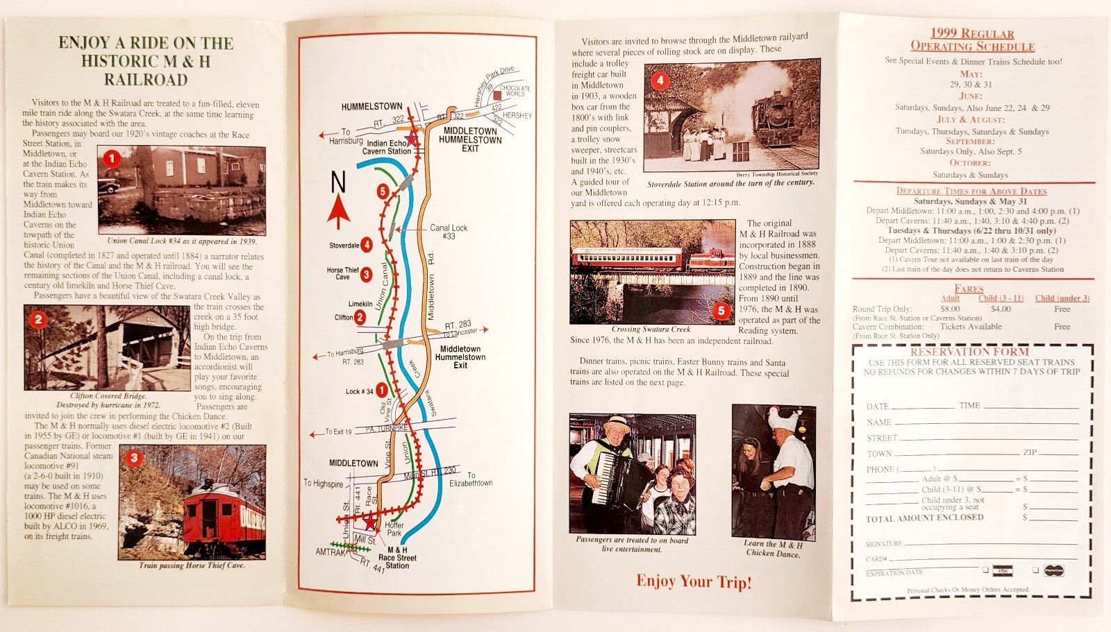 - 1999 Middletown & Hummelstown Railroad Schedule Vintage Train Pamphlet F13E