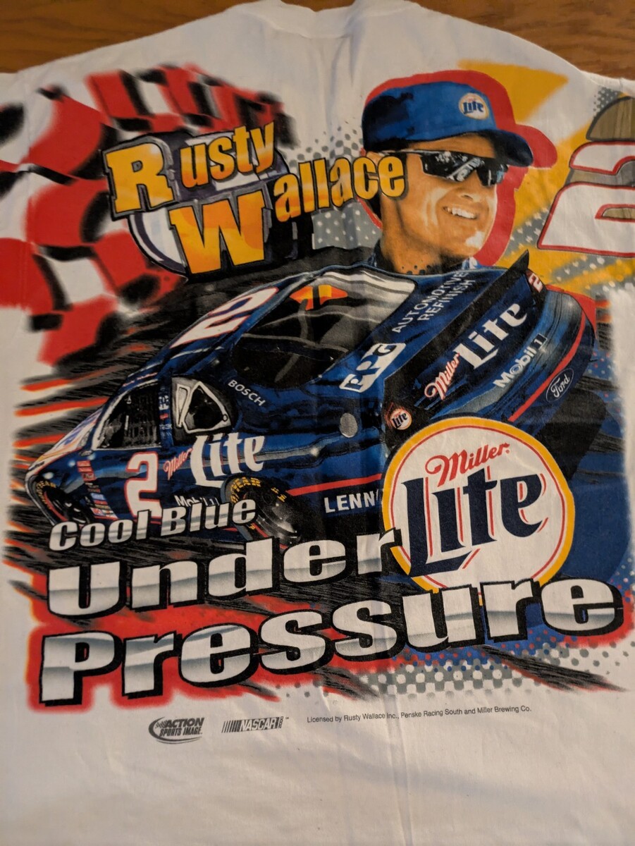 - 1999 Rusty Wallace Cool Under Pressure Miller Lite All Over Print T Shirt Large