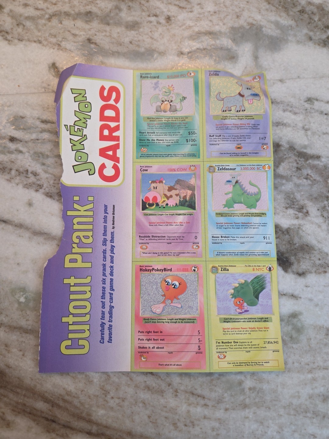 - 1999 Vintage Pokemon Parody Cards from Nickelodeon Magazine - Jokemon FULL SET