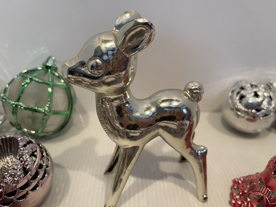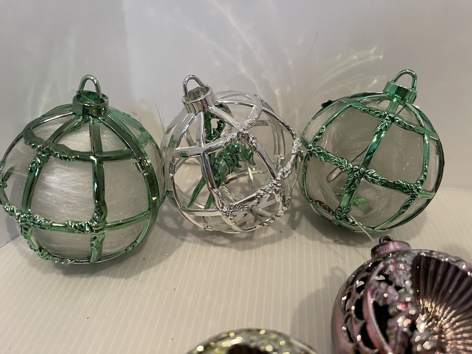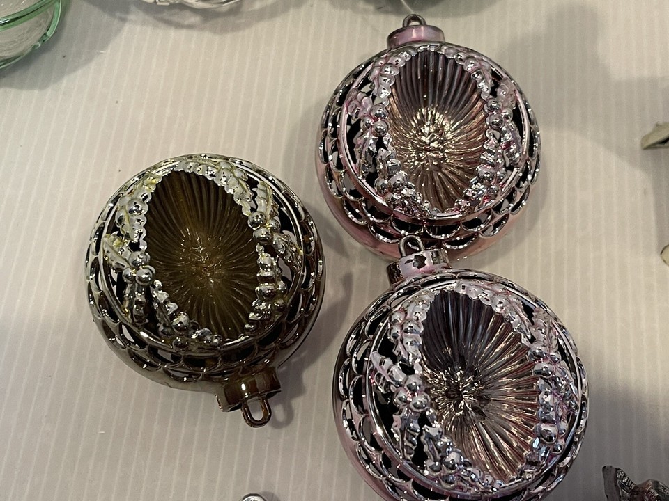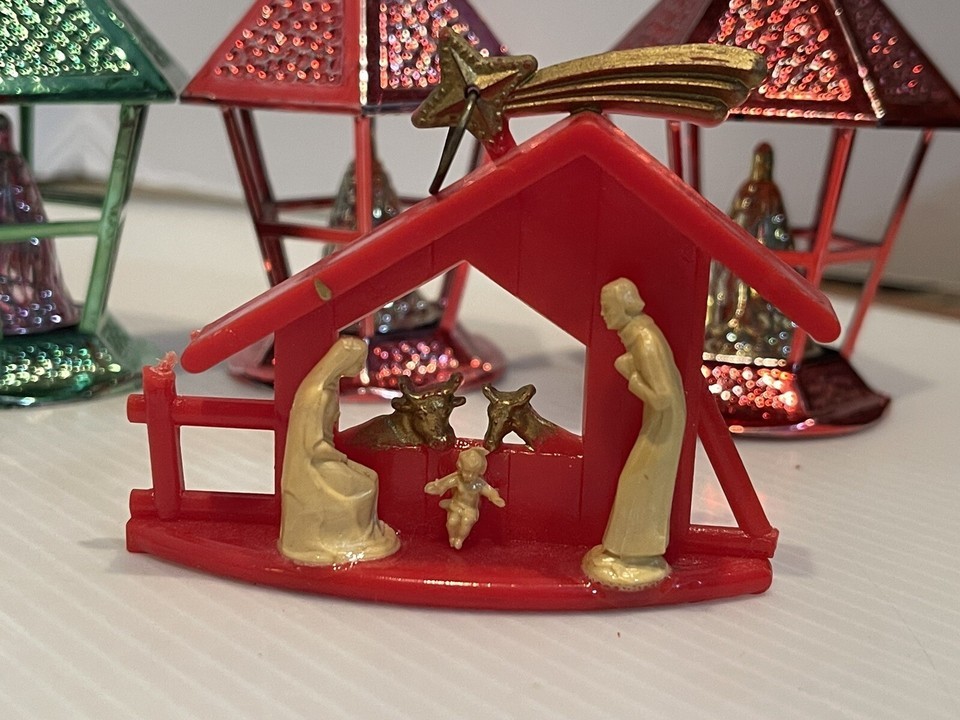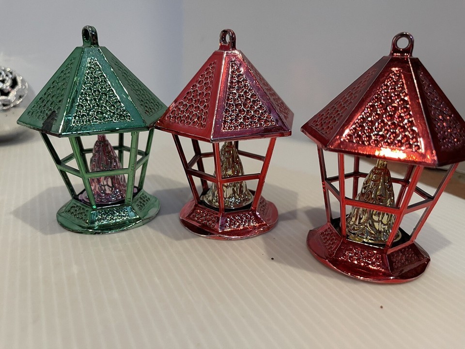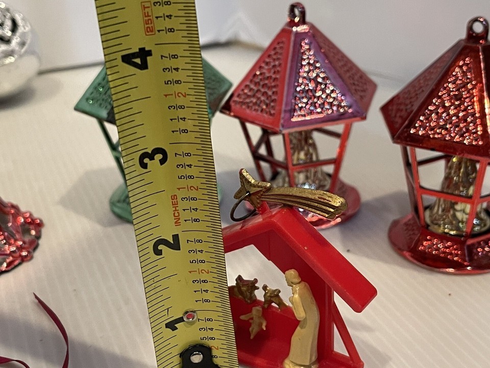 19 Vtg Metallic Jewel Bright Bradford Lantern Diorama Christmas Ornaments Plastic