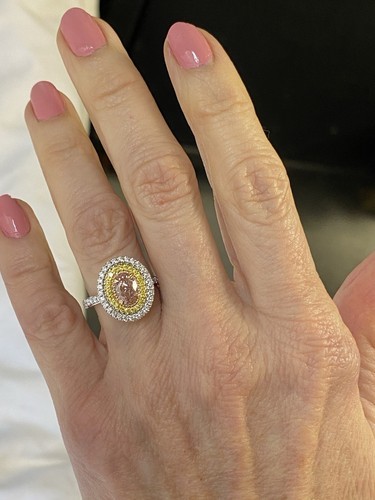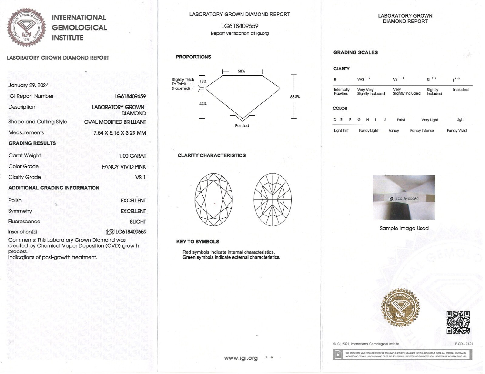 - 1Ct Oval Igi Vivid Pink Kunstdiamanten Grown Diamant Verlobungsring 14K Weißgold