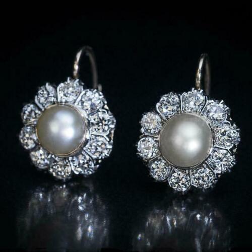 1Ct Simulated Pearl & Diamond Drop Dangle Earring 14K White Gold Plated Silver
