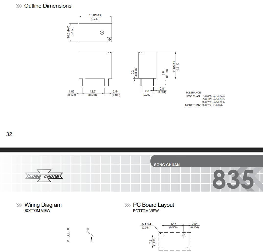 1X 835-1A-B-C 5VDC SONG CHUAN Miniature PCB Relay 5VDC SPST-NO 10A TV-5 4-Pin