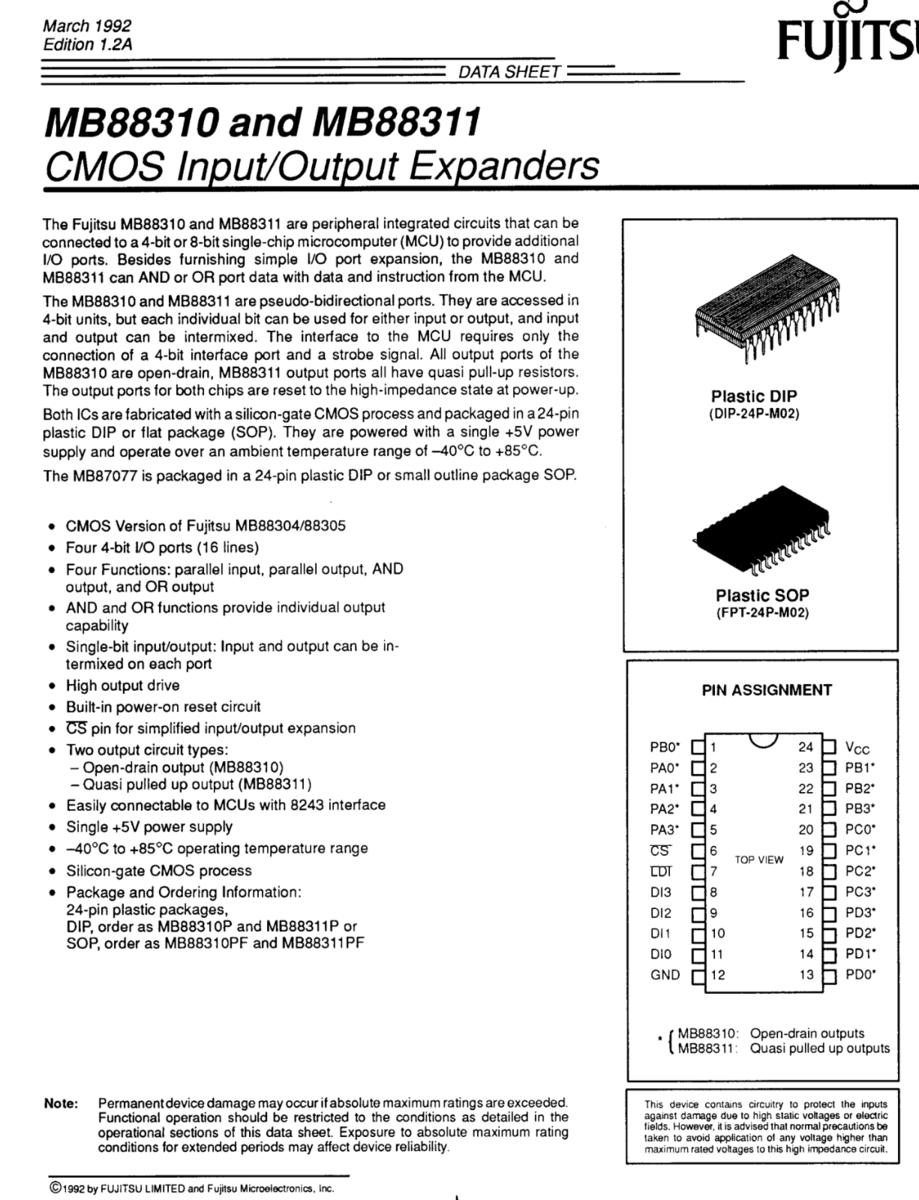 1 Piece - MB88310 FUJITSU CMOS Input Output Expander 4 Bit I O Port 5V 24-DIP