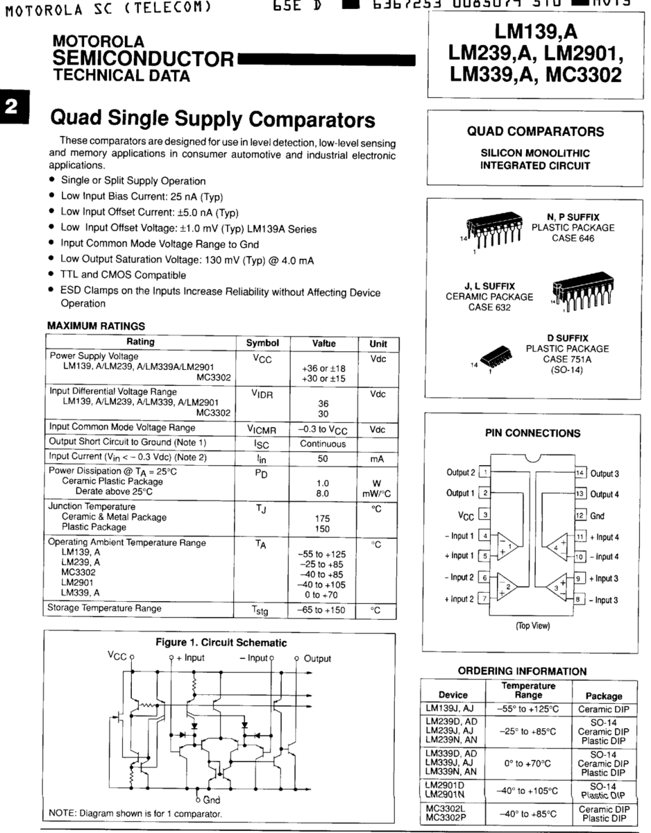 - 1X MC3302L-RS MC3302 Motorola Quad Single Supply Comparator IC Ceramic CDIP-14