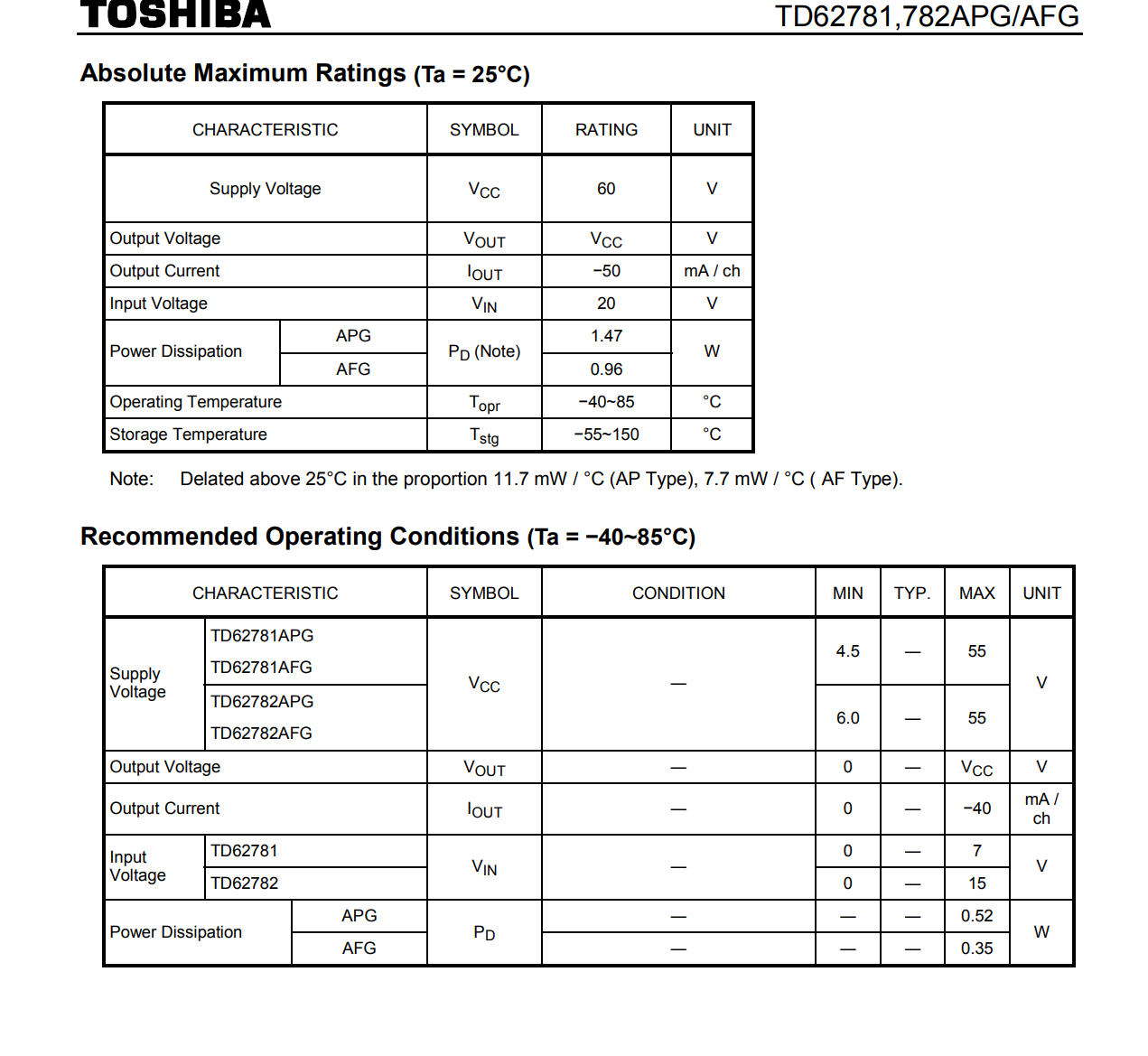1 Piece - TD62782AP Toshiba 8-Channel High-Voltage Source Driver 60V 50mA DIP-18