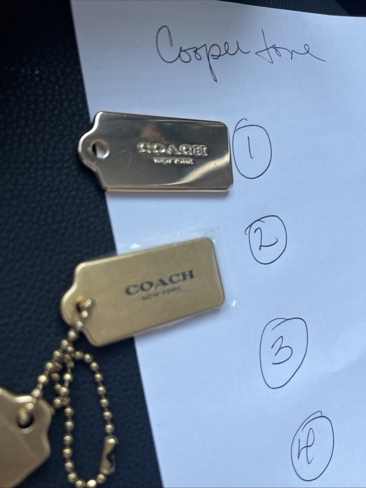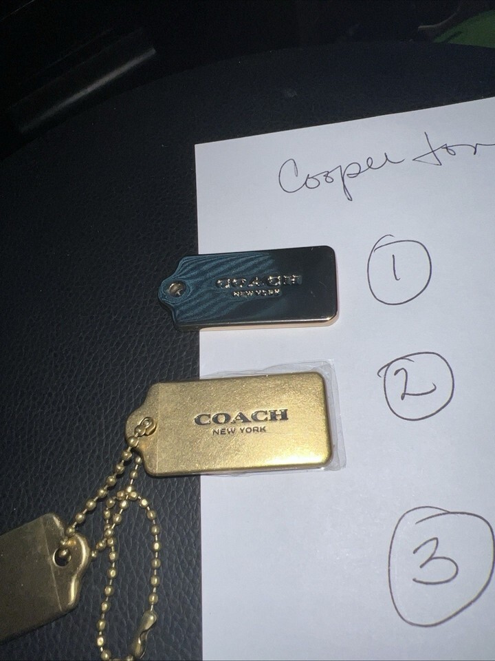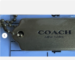 This 2.00" Coach New York gold with black name heavy metal bag tag key chain hang tag is a stylish accessory designed for women. Made from durable metal, this key chain features the iconic Coach brand logo and comes in a sleek gold color with a black name plate. Perfect for adding a touch of luxury to your everyday essentials, this tag is both practical and fashionable, making it a must-have for any fashion-forward woman.