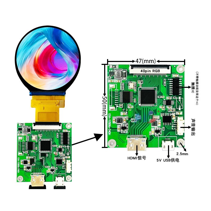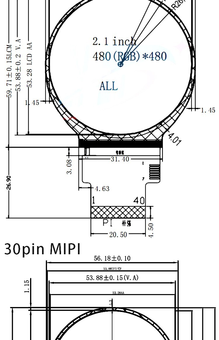 - 2.1 Inch 480x480 Round Circle HDMI-compatible to RGB MIPI IPS 40pins LCD Screen