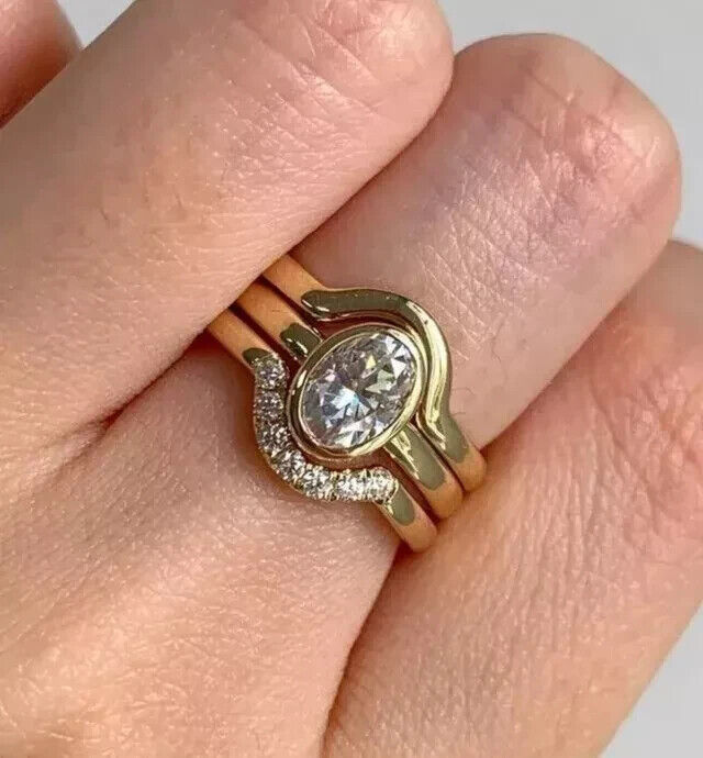 2.10Ct Simulated Diamond Bezel Engagement Ring 14k Yellow Gold Plated Silver
