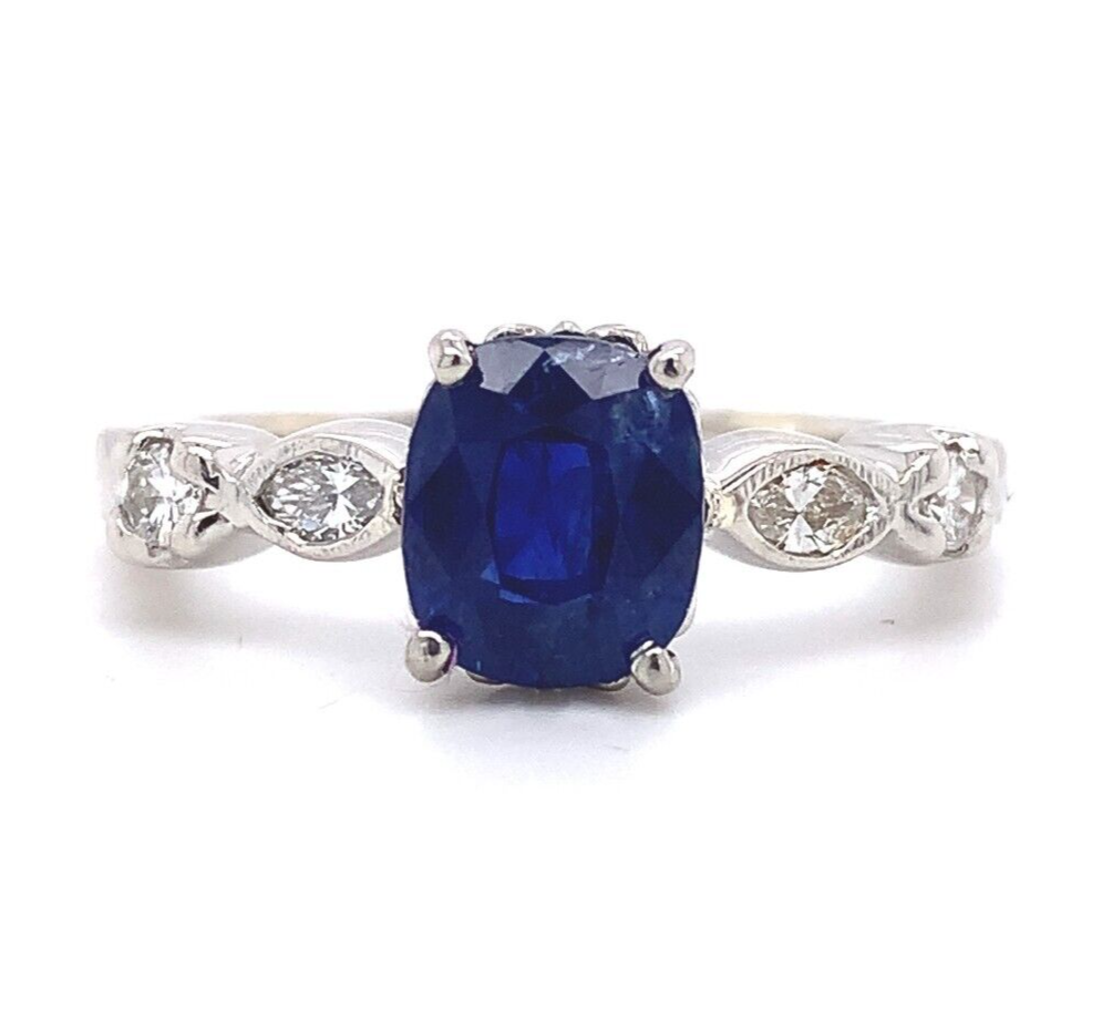- 2.13ct Genuine Natural Sapphire Platinum Ring with Diamonds Jewelry (#J5779)