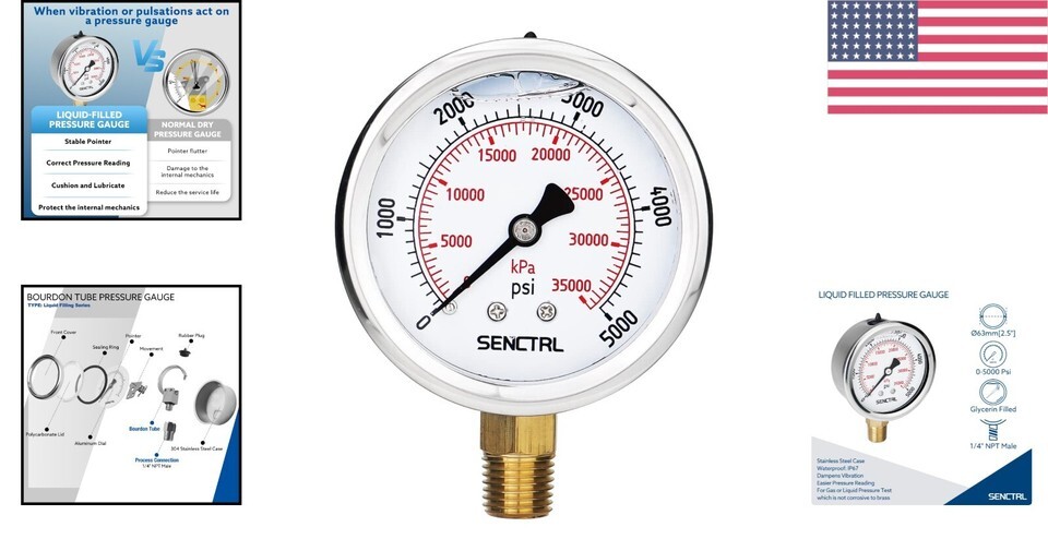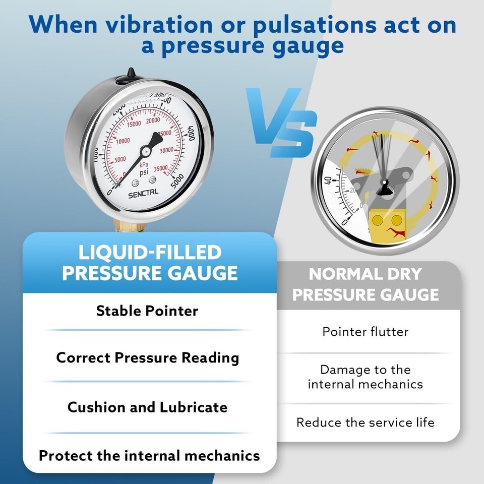Glycerin filling inhibits pointer flutter, enhancing the accuracy and longevity of the gauge.
