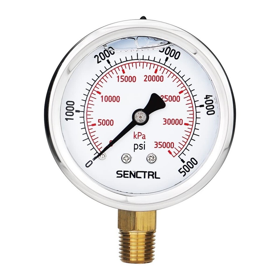 - 2.5" Glycerin-Filled Pressure Test Gauge - 5000 PSI, Lower Mount, Durable Design