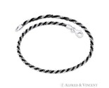 2.5mm Roc Link 2-Tone Spiral .925 Sterling Black & Silver Italian Chain Anklet