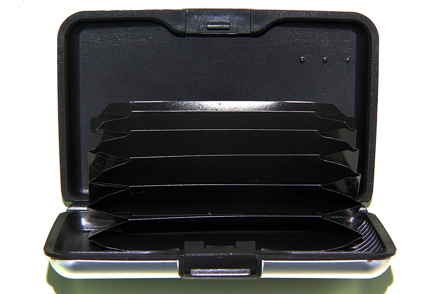 - 2 Aluminum Hard Case for Men & Women Credit Cards Wallet Colors Black & Blue