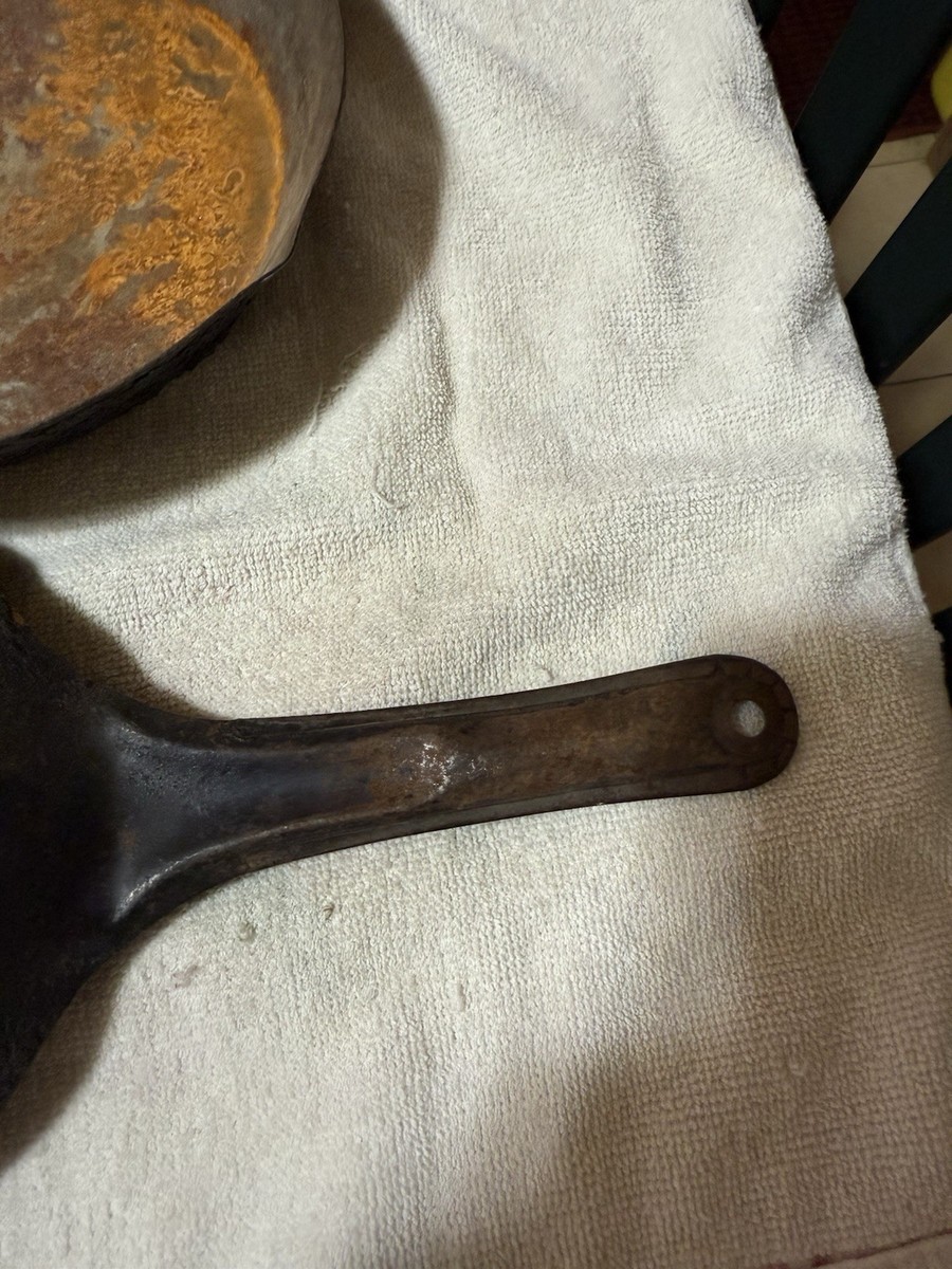 - 2/Antique Cold Handle Style Cowboy Camping Skillets 1/DeLuxe 1/Unmarked