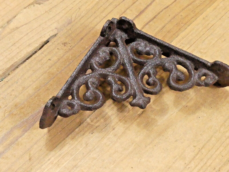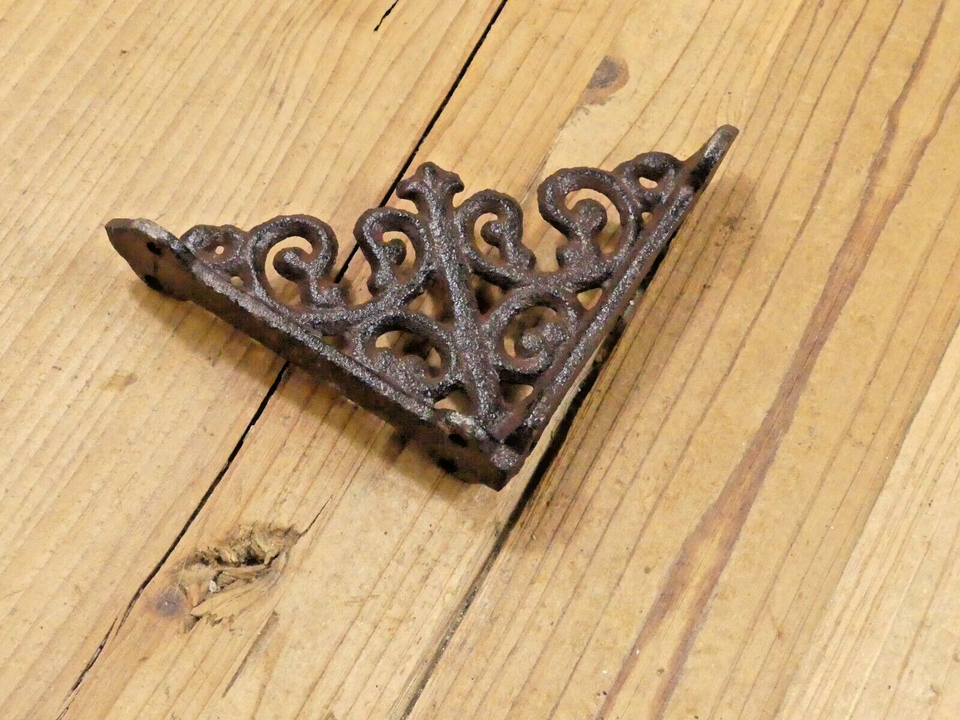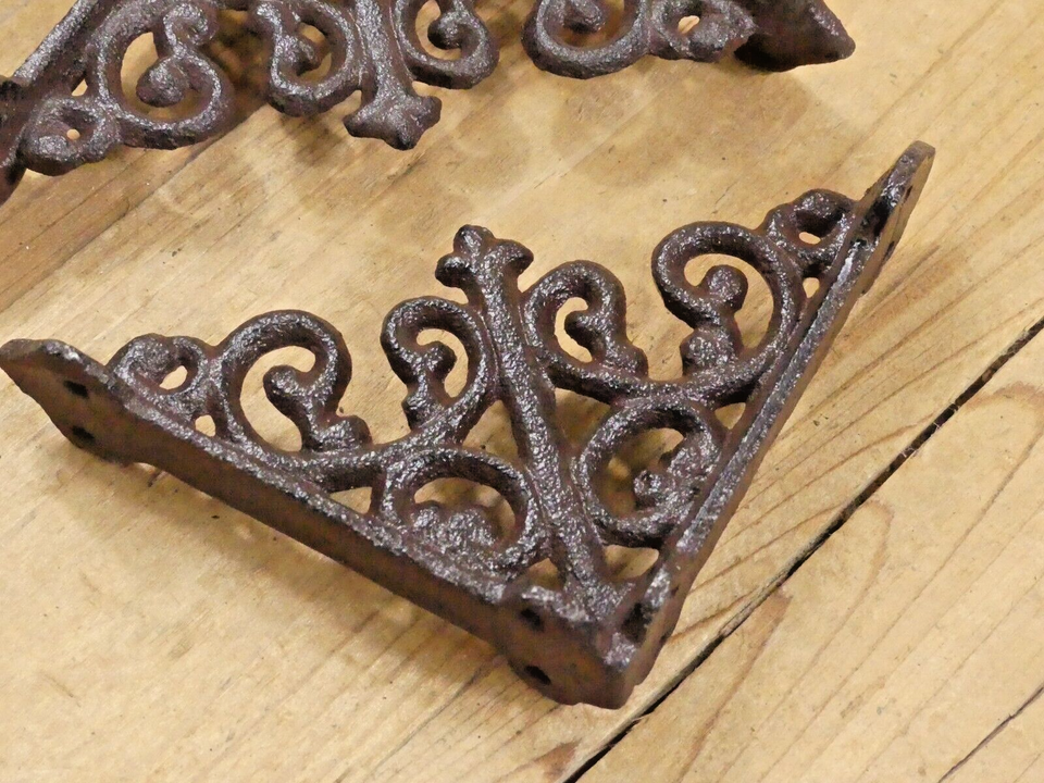 - 2 Antique Style Shelf Brace Wall Bracket Cast Iron Brackets SMALL FLEUR DE LIS