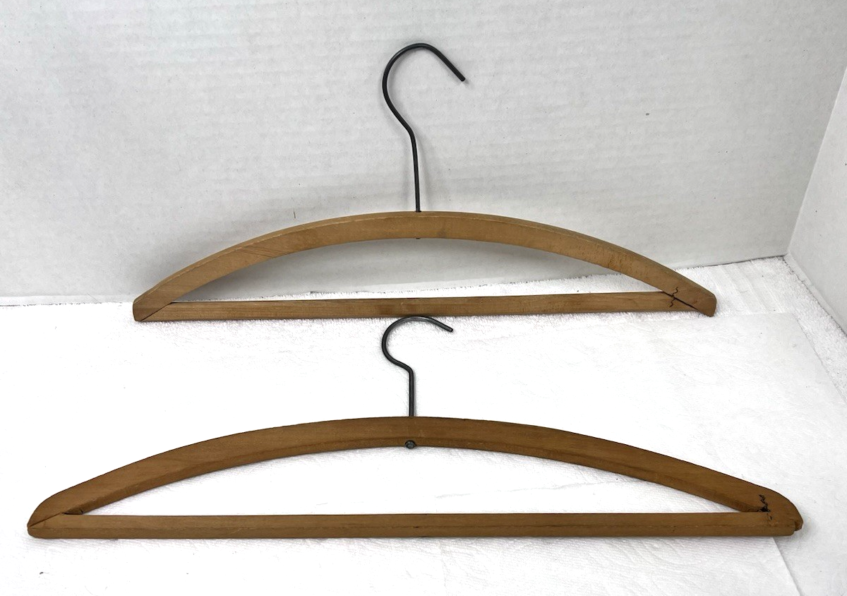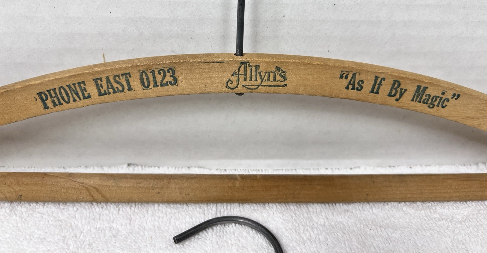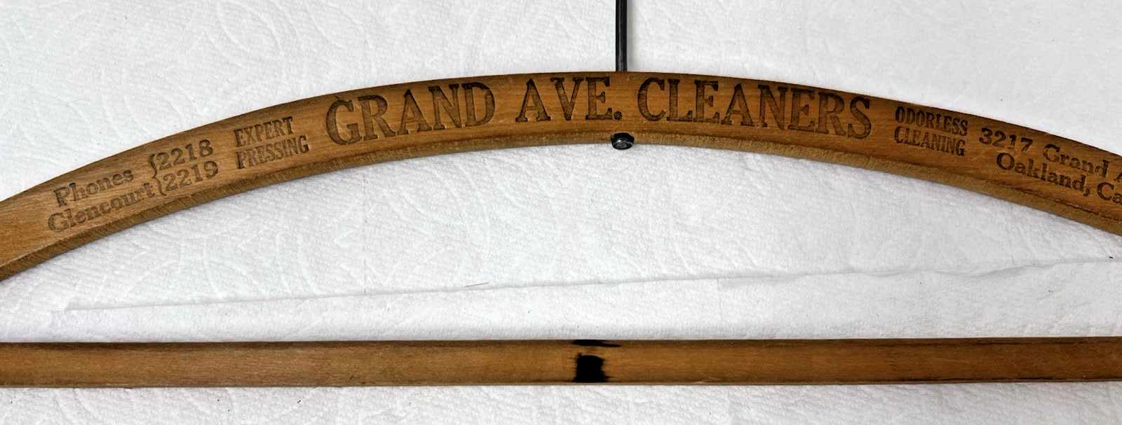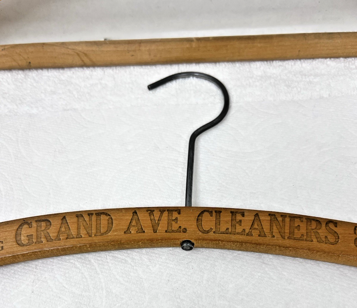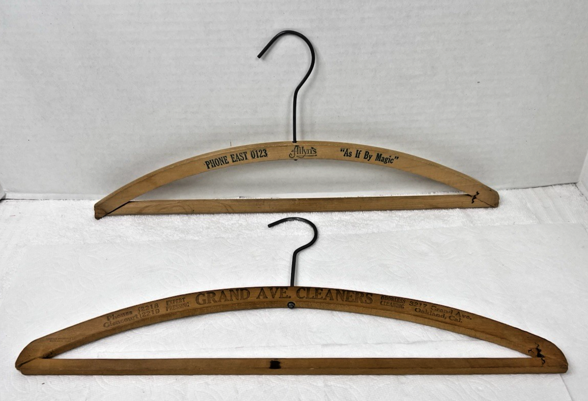 2 Antique Wood Metal Advertising Coat Hangers Grand Ave Cleaners Allyn's NICE!
