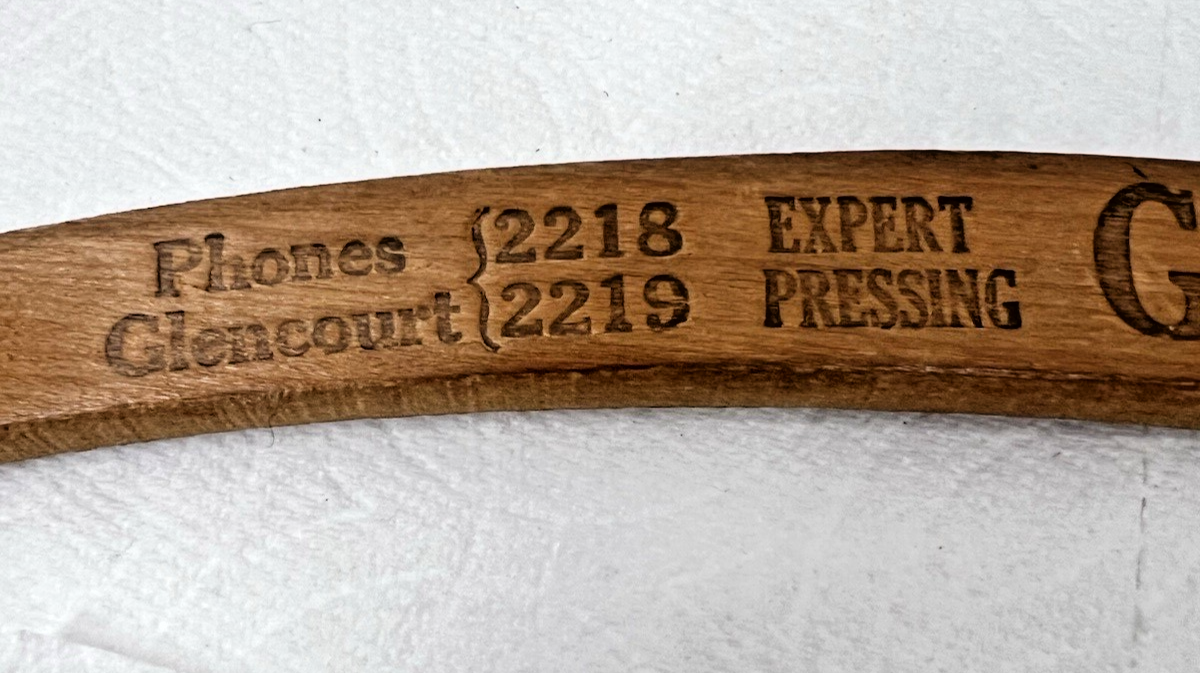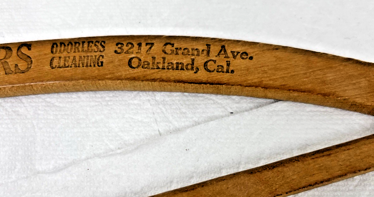 Grand Ave Cleaners Oakland Cal. 16 3/4 7 3/4 inch from the metal top to the base of the wood