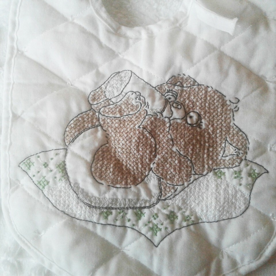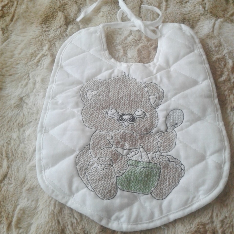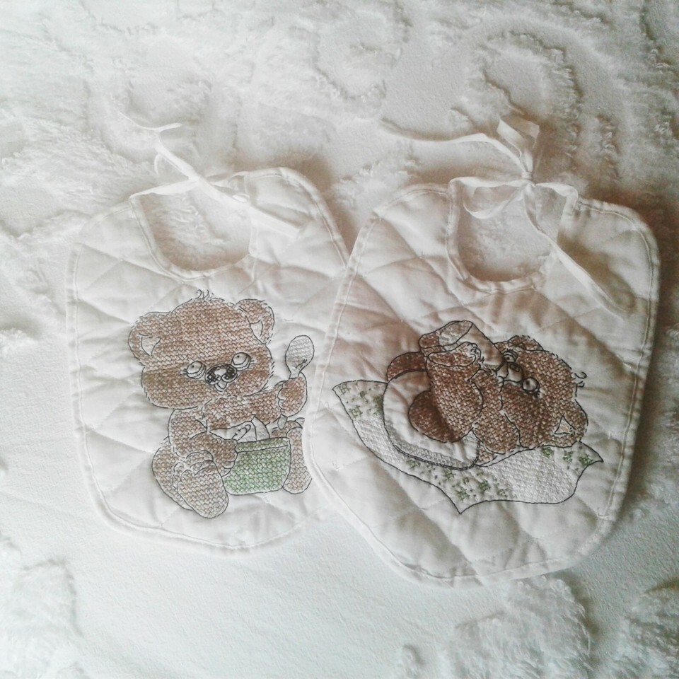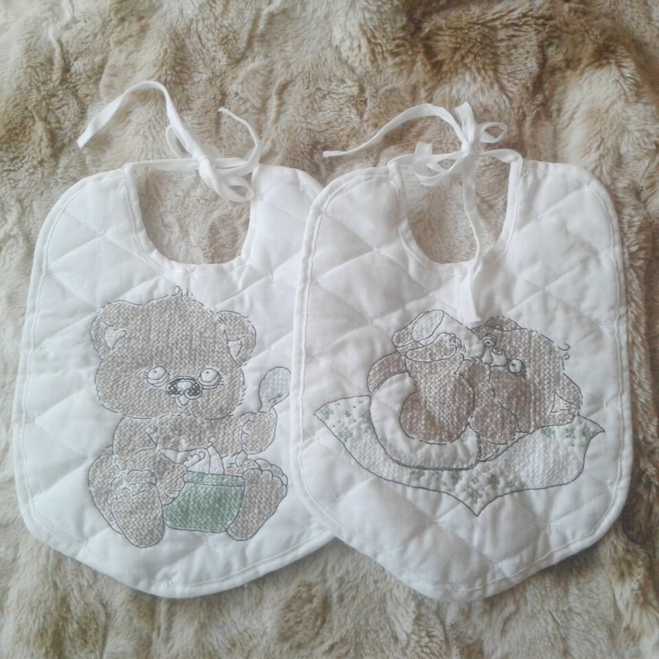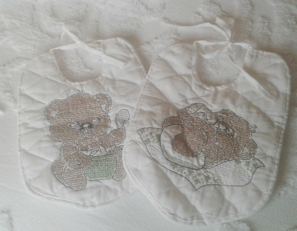 - 2 Arctic Circle Quilted Baby Bear Boy Girl Stamped Cross Stitch Kit Bibs White