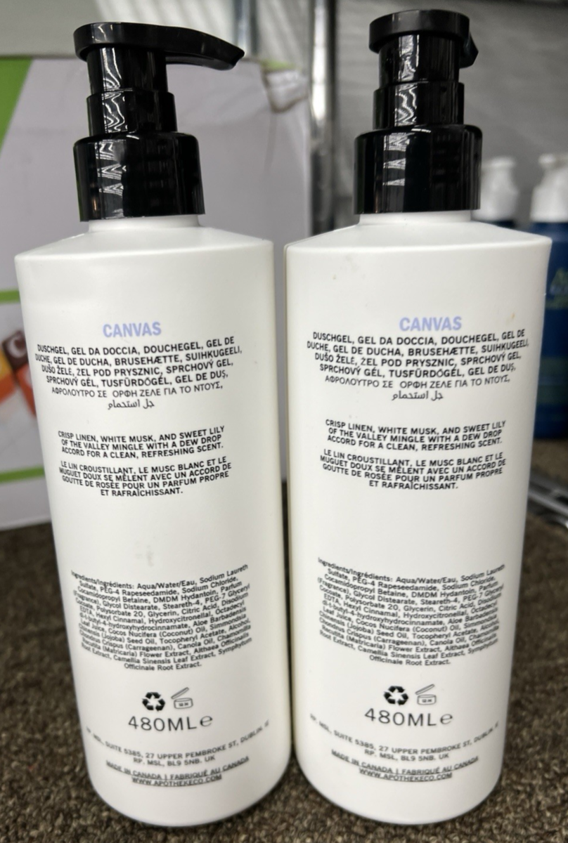 2 Bottles Apotheke Canvas Plant Based Bath BODY WASH