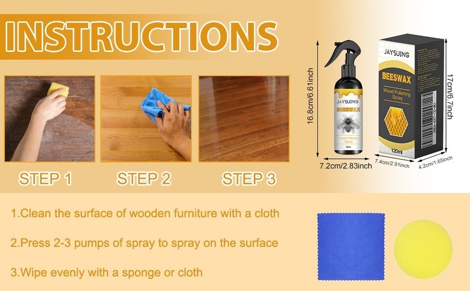 - 2 Boxes JaySuing Beeswax Wood Polishing Spray 120ml with Polish Cloth and Sponge