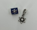 2 Brighton Charms-Arctica Snowflake Silver Dangle-Blue Enamel Snowflake Spacer