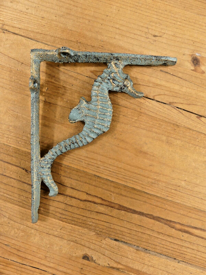 2 Cast Iron NAUTICAL SEAHORSE Brackets Garden Braces Shelf Bracket Book Beach