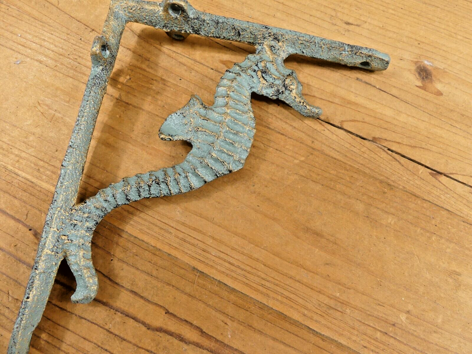 - 2 Cast Iron NAUTICAL SEAHORSE Brackets Garden Braces Shelf Bracket Book Beach