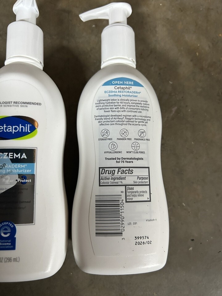 - 2 Cetaphil Restoraderm Soothing Moisturizer for Eczema Skin 10oz Exp 02/2026