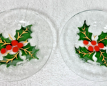 - 2 Christmas Holly & Berry Fused Glass Mini Plate Coaster Set 4" Great Shape
