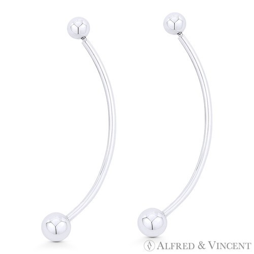 2" Curved Barbell Drop Earrings w/ 6mm 8mm Ball Beads in .925 Sterling Silver