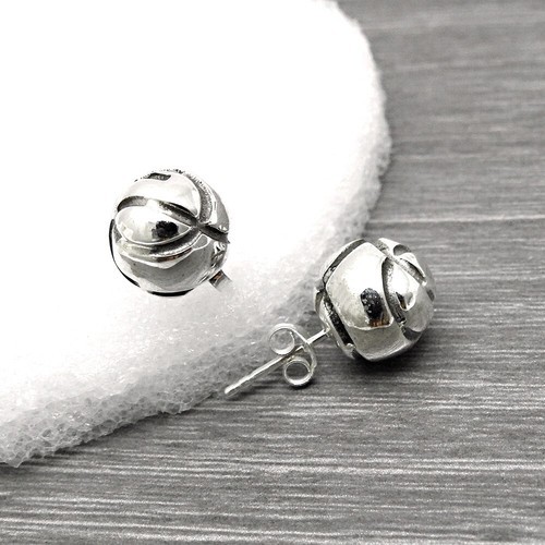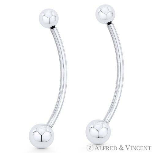 The featured earrings are cast in .925 sterling silver and showcase curved barbell designs w/ 6mm 8mm ball beads then finished with pin- -tube posts for an easy fit.