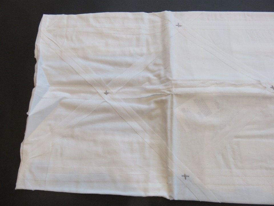 - fine cotton voile stripe stitched in a lattice design with contrast tacking embroidery
