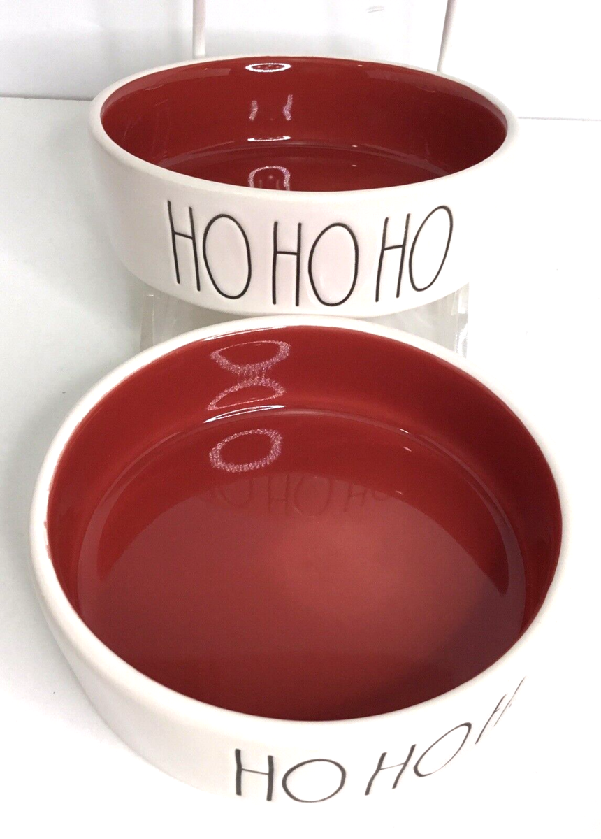 - 2 Dish Bowl Rae Dunn Christmas HO HO HO Small Dog Cat Pet Food Water NEW