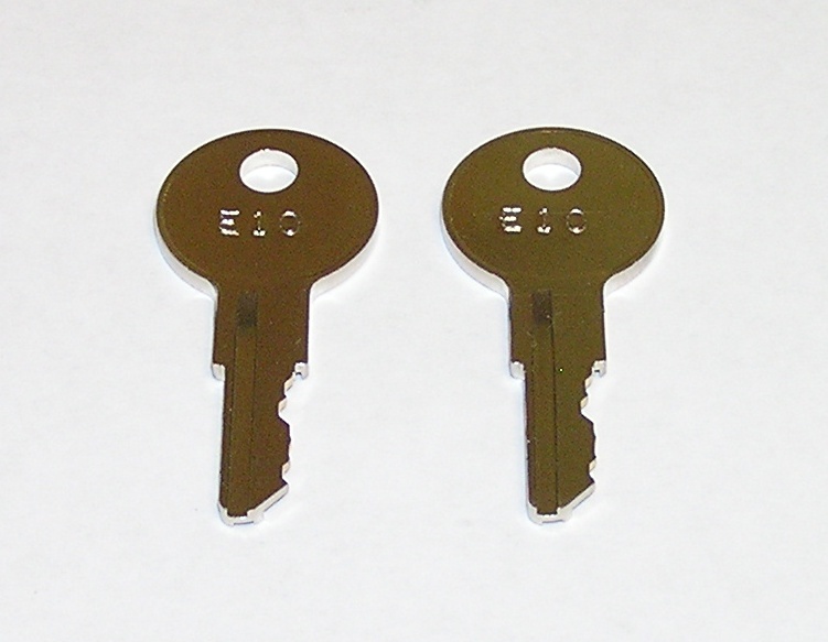 This listing is for a quantity of two (2) E10 Electrical Switch Keys, fits Square D 9001 series selector switches, commonly used on balers, trash compactor locks, and other uses. High quality nickel plated solid brass keys.
