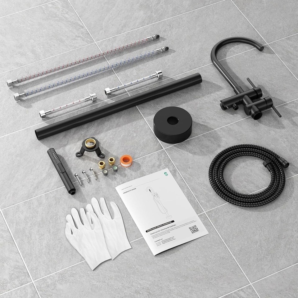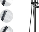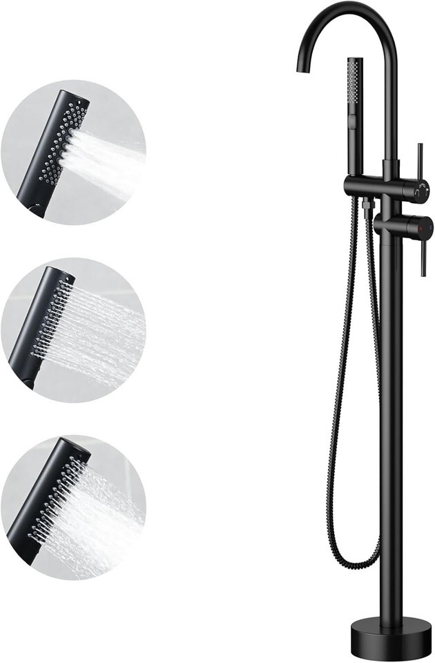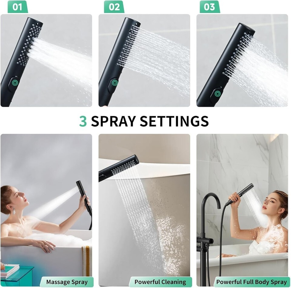 Free Standing Bathtub Faucet Set: SR SUN RISE Floor Mount Tub Filler with 3-Function Handheld Shower Head, Matte Black High Flow Brass Freestanding Shower Faucet