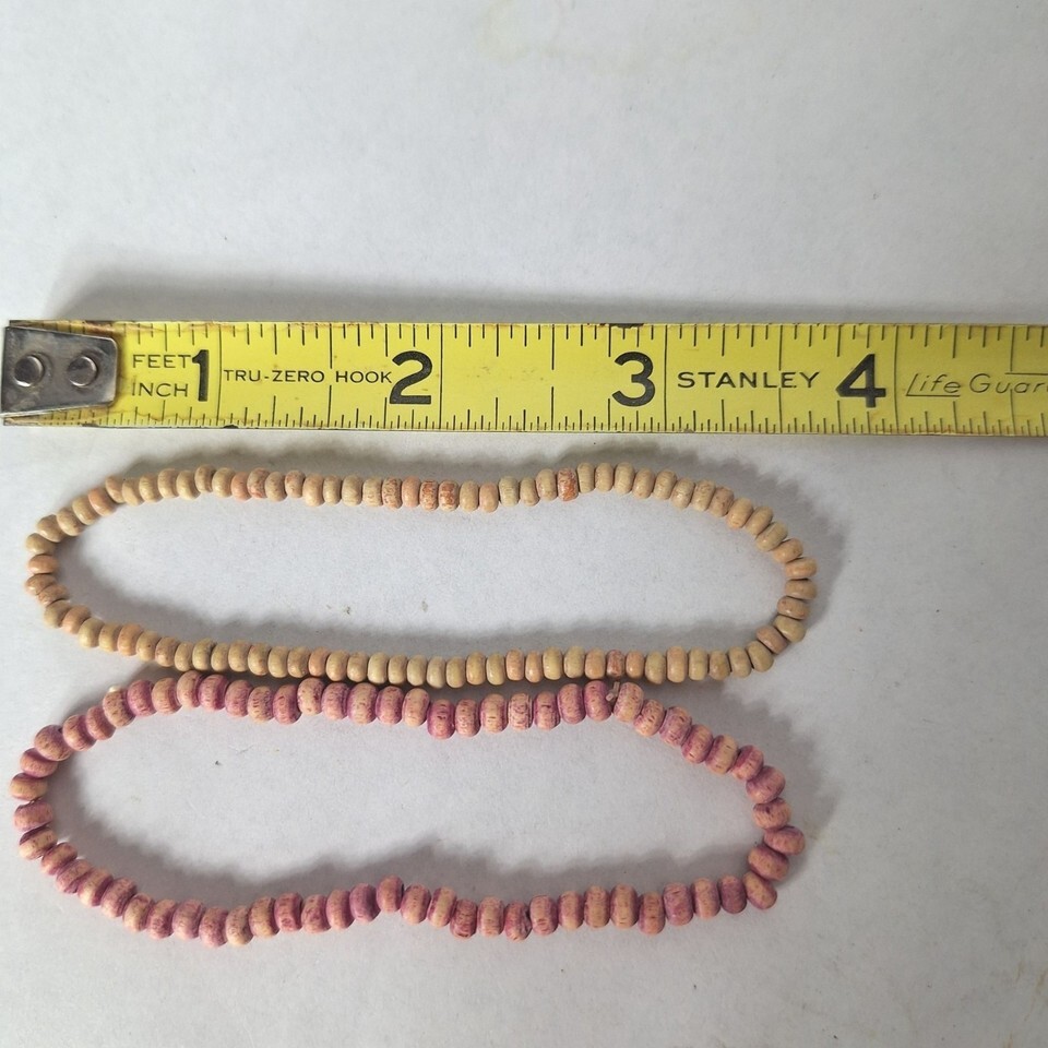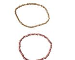 - 2 Handmade Beaded Stretch Bracelets Natural Wood & Maroon Boho Jewelry Gift